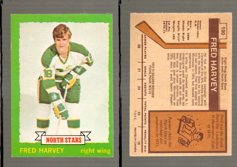 ITEM# : CS10417698 1973-74 O-PEE-CHEE CARD #190 F.HARVEY DESCRIPTION 1973-74 O-PEE-CHEE CARD #190 F.HARVEY CONDITION NRMINT NO CREASE PRICE $4.99 USD SHIPPING CANADA RESIDENT $3.00