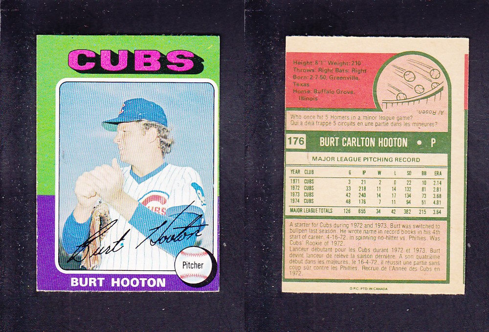 ITEM# : CS11487716 1975 O-PEE-CHEE BASEBALL CARD #176 B. HOOTON DESCRIPTION 1975 O-PEE-CHEE BASEBALL CARD #176 B. HOOTON CONDITION EX+ NO CREASE PRICE $2.99 USD SHIPPING CANADA RESIDENT 3.00$