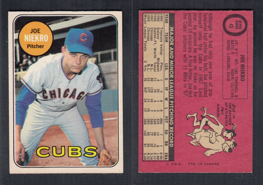ITEM# : CS11545879 1969 O-PEE-CHEE BASEBALL CARD #43 J. NIEKRO DESCRIPTION 1969 O-PEE-CHEE BASEBALL CARD #43 J. NIEKRO CONDITION EX+ NO CREASE PRICE $2.99 USD SHIPPING CANADA RESIDENT $3.00
