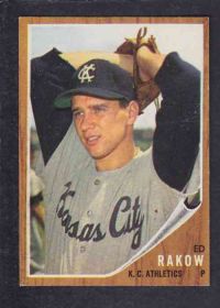 ITEM# : CS11992791 1962 TOPPS BASEBALL CARD #342 E. RAKOV DESCRIPTION 1962 TOPPS BASEBALL CARD #342 E. RAKOV CONDITION EX/MINT NO CREASE PRICE $1.99 USD SHIPPING CANADA RESIDENT 3.00$