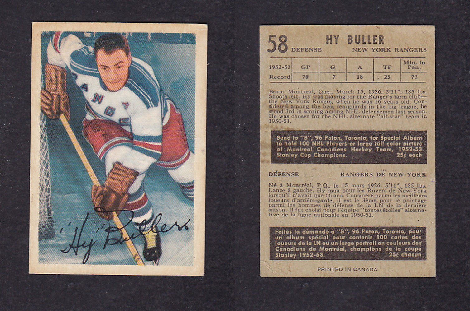 1953-54 PARKHURST HOCKEY CARD #58 H. BULLER photo