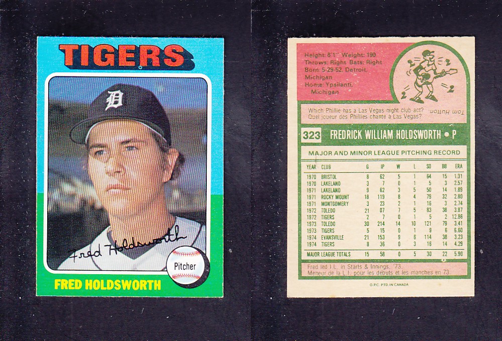ITEM# : CS14337054 1975 O-PEE-CHEE BASEBALL CARD #323 F. HOLDSWORTH DESCRIPTION 1975 O-PEE-CHEE BASEBALL CARD #323 F. HOLDSWORTH CONDITION NRMINT NO CREASE PRICE $2.99 USD SHIPPING CANADA RESIDENT 3.00$