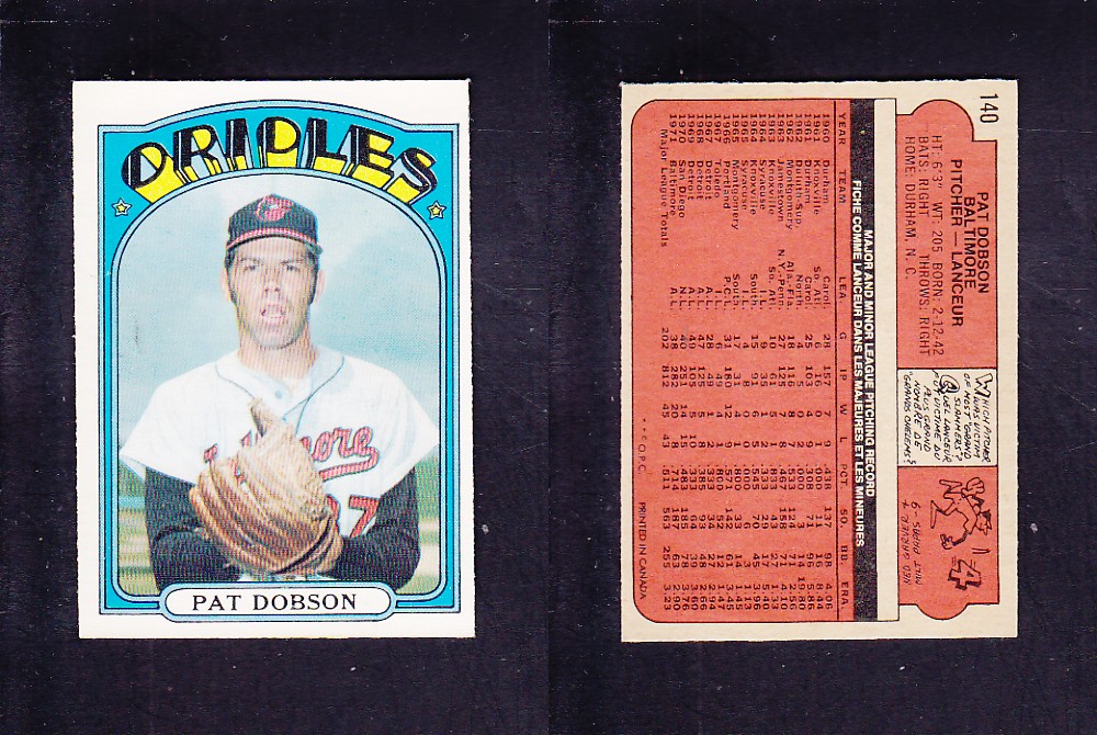 1972 O-PEE-CHEE BASEBALL CARD #140 P. DOBSON photo
