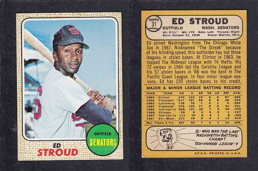 1968 TOPPS BASEBALL CARD  #31  E. STROUD photo