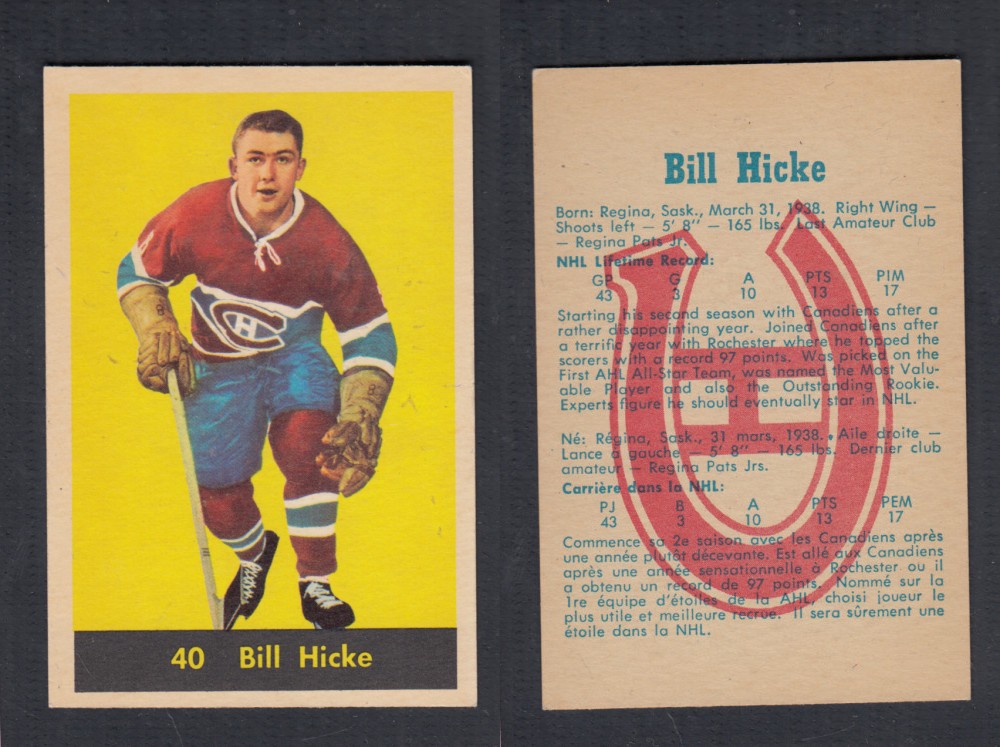 ITEM# : CS18467829 1960-61 PARKHURST HOCKEY CARD #40 B. HICKE DESCRIPTION 1960-61 PARKHURST HOCKEY CARD #40 B. HICKE CONDITION EX/MINT - NO CREASES PRICE $14.99 USD SHIPPING CANADA RESIDENT 3.00$