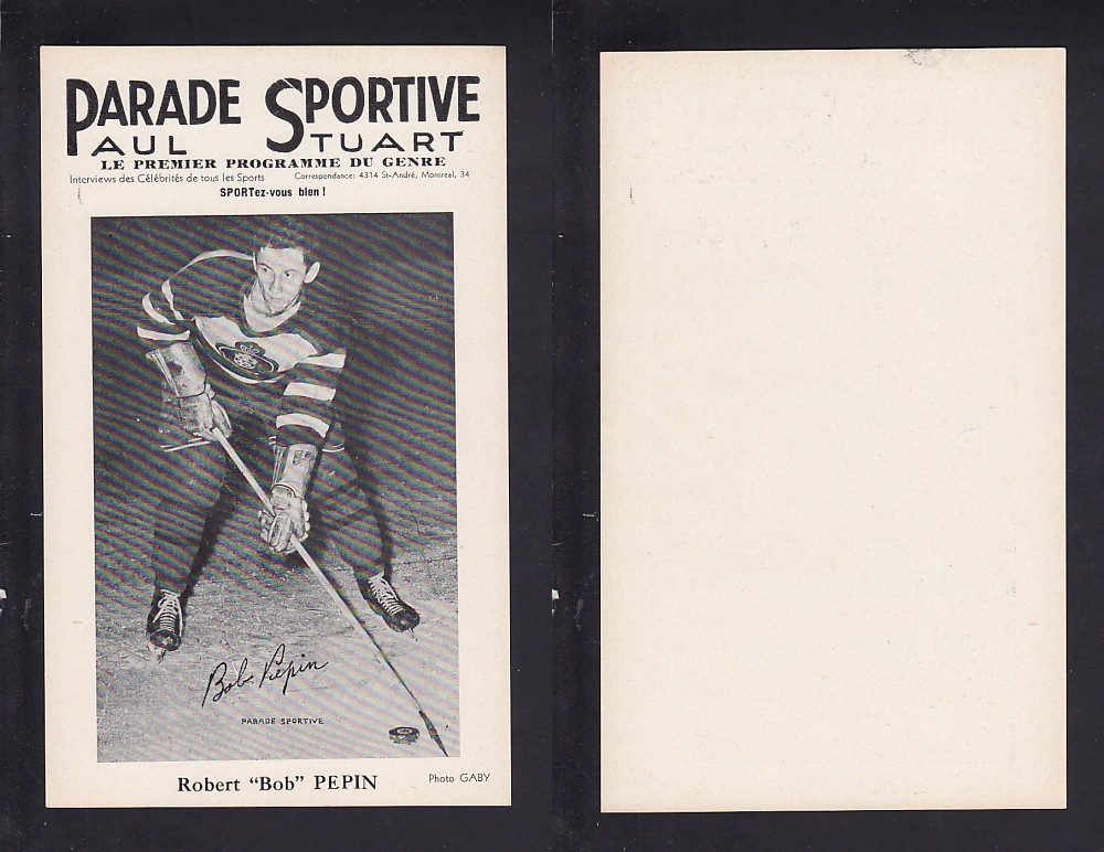 ITEM# : CS19355330 1943-47 PARADE SPORTIVE B. PEPIN DESCRIPTION 1943-47 PARADE SPORTIVE B. PEPIN CONDITION MINT NO CREASE PRICE $9.99 USD SHIPPING CANADA RESIDENT 3.00$