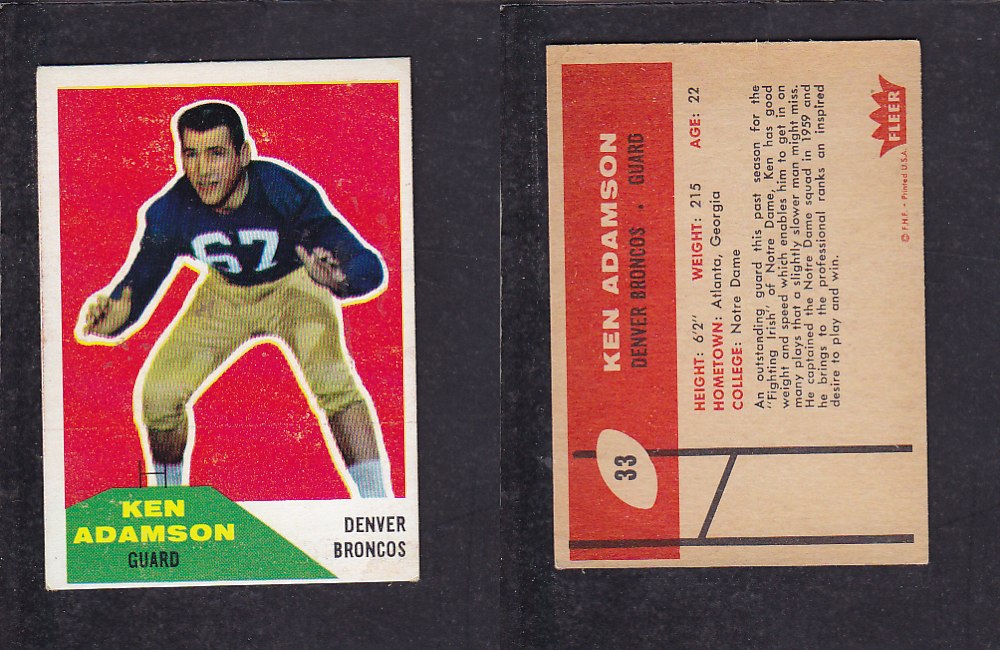 1960 NFL FLEER FOOTBALL CARD #33 K. ADAMSON