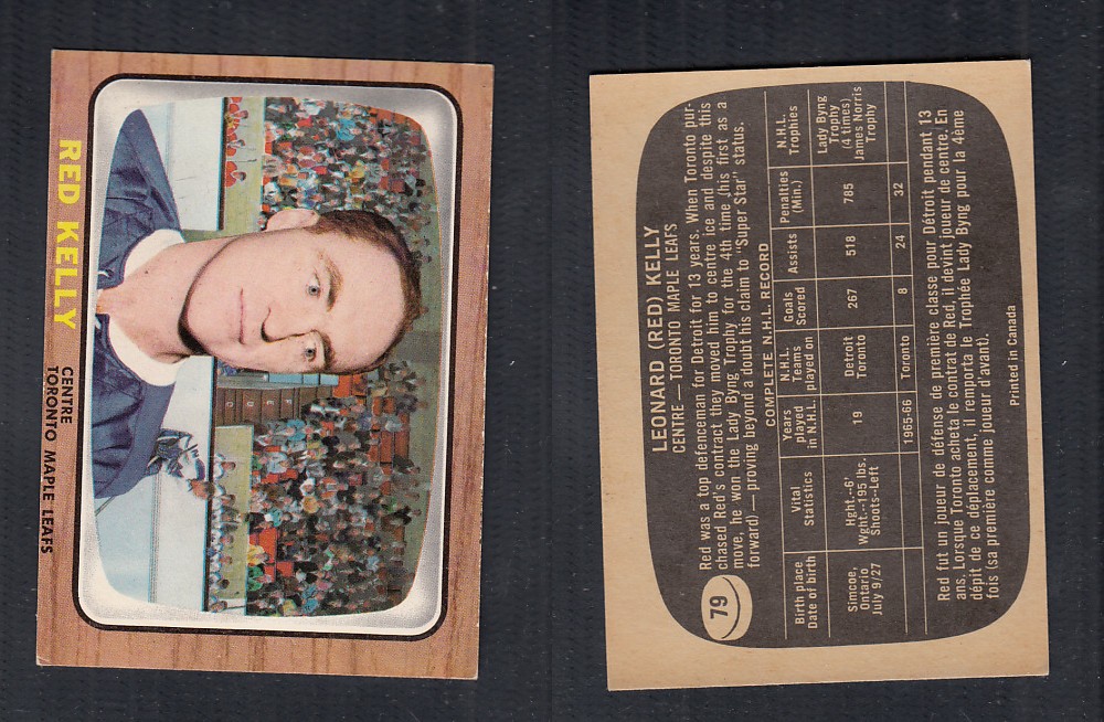 ITEM# : CS22256554 1966-67 TOPPS HOCKEY CARD #79 R. KELLY DESCRIPTION 1966-67 TOPPS HOCKEY CARD #79 R. KELLY CONDITION EX+ NO CREASE PRICE $11.99 USD SHIPPING CANADA RESIDENT 3.00$