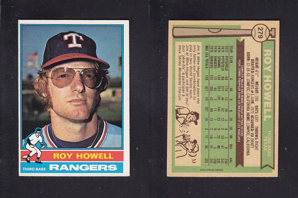 ITEM# : CS23827540 1976 O-PEE-CHEE BASEBALL CARD #279 R. HOWELL DESCRIPTION 1976 O-PEE-CHEE BASEBALL CARD #279 R. HOWELL CONDITION EX/MINT NO CREASE PRICE $1.99 USD SHIPPING CANADA RESIDENT 3.00$
