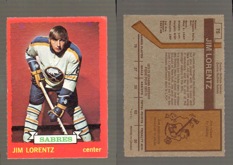 1973-74 O-PEE-CHEE CARD #75 J. LORENTZ photo