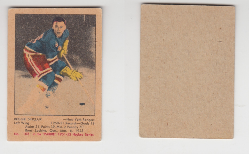 ITEM# : CS25672818 1951-52 PARKHURST HOCKEY CARD #103 R. SINCLAIR DESCRIPTION 1951-52 PARKHURST HOCKEY CARD #103 R. SINCLAIR CONDITION EX NO CREASE PRICE $39.99 USD SHIPPING CANADA RESIDENT 3.00$