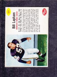 ITEM# : CS26976303 1962 NFL POST FOOTBALL CARD #177 B. LAPHAM DESCRIPTION 1962 NFL POST FOOTBALL CARD #177 B. LAPHAM CONDITION EX+ NO CREASE PRICE $2.99 USD SHIPPING CANADA RESIDENT $3.00
