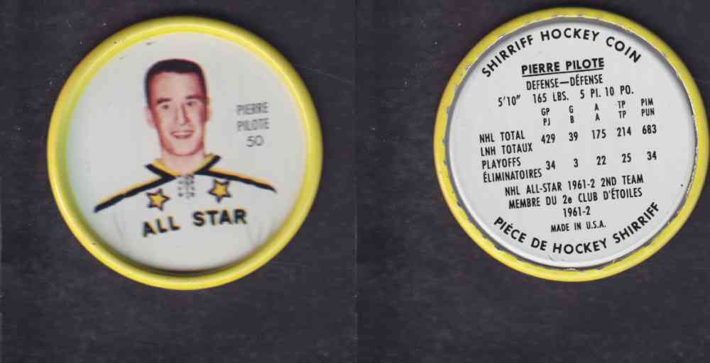 ITEM# : CS27258148 1962-63 SHIRRIFF HOCKEY COIN #50 P. PILOTE DESCRIPTION 1962-63 SHIRRIFF HOCKEY COIN #50 P. PILOTE CONDITION EX+ PRICE $3.99 USD SHIPPING CANADA RESIDENT 3.00$
