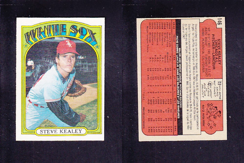 ITEM# : CS32251230 1972 O-PEE-CHEE BASEBALL CARD #146 S. KEALEY DESCRIPTION 1972 O-PEE-CHEE BASEBALL CARD #146 S. KEALEY CONDITION MINT NO CREASE PRICE $2.99 USD SHIPPING CANADA RESIDENT 3.00$