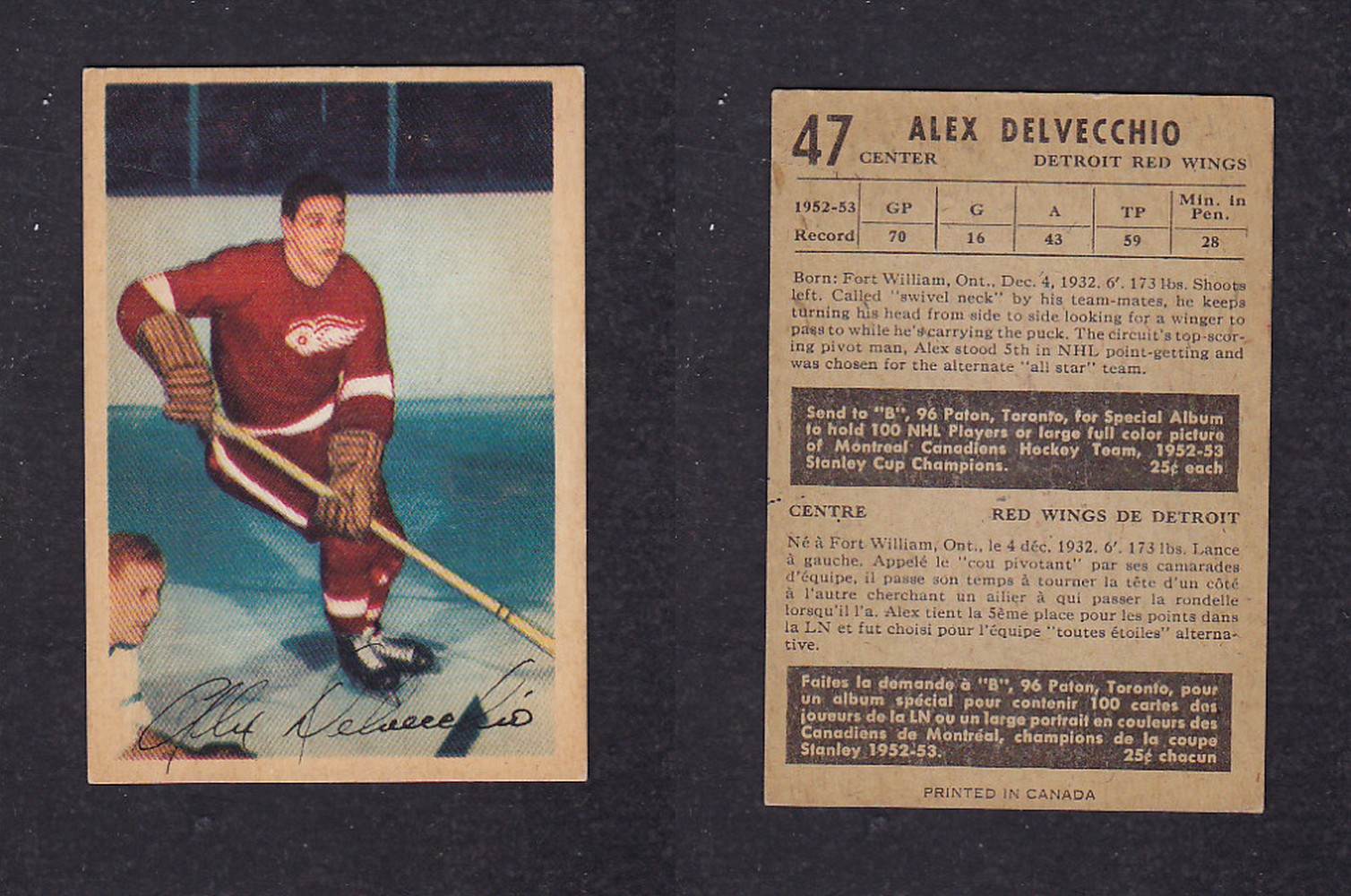 1953-54 PARKHURST HOCKEY CARD #47 A. DELVECCHIO