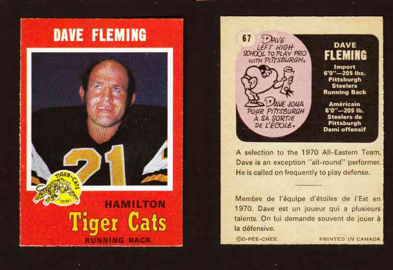 ITEM# : CS37958746 1971 CFL O-PEE-CHEE FOOTBALL CARD #67 D. FLEMING DESCRIPTION 1971 CFL O-PEE-CHEE FOOTBALL CARD #67 D. FLEMING CONDITION NRMINT NO CREASE PRICE $9.99 USD SHIPPING CANADA RESIDENT $3.00