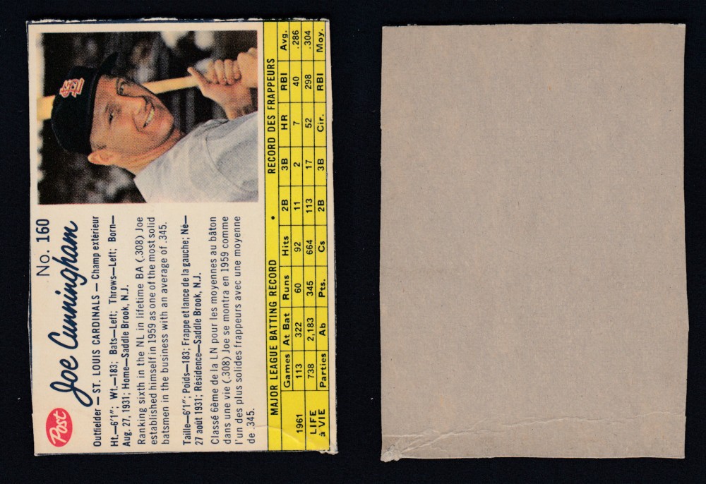 ITEM# : CS38835825 1962 POST CANADIAN BASEBALL CARD #160 J. CUNNINGHAM DESCRIPTION 1962 POST CANADIAN BASEBALL CARD #160 J. CUNNINGHAM CONDITION HAND CUT PRICE $2.99 USD SHIPPING CANADA RESIDENT $3.00