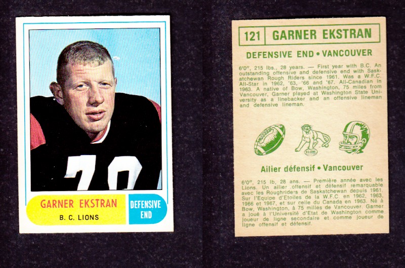ITEM# : CS39080243 1968 CFL O-PEE-CHEE FOOTBALL CARD #121 G. EKSTRAN DESCRIPTION 1968 CFL O-PEE-CHEE FOOTBALL CARD #121 G. EKSTRAN CONDITION EX+ NO CREASE PRICE $7.99 USD SHIPPING CANADA RESIDENT $3.00