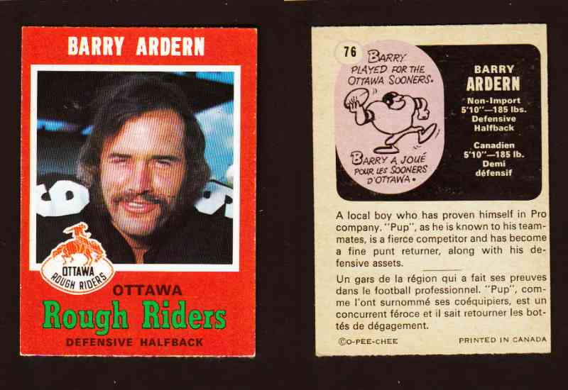 1971 CFL O-PEE-CHEE FOOTBALL CARD #76 B. ARDERN photo