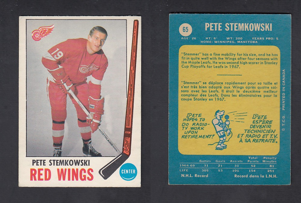 ITEM# : CS47894640 1969-70 O-PEE-CHEE HOCKEY CARD #65 P. STEMKOWSKI DESCRIPTION 1969-70 O-PEE-CHEE HOCKEY CARD #65 P. STEMKOWSKI CONDITION EX+ NO CREASE