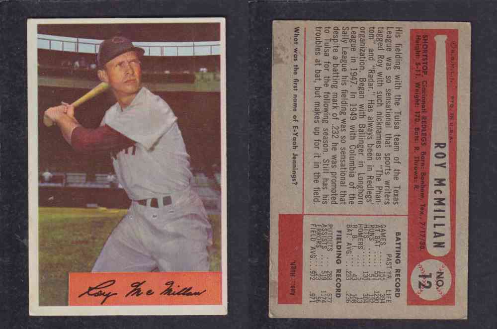 ITEM# : CS50731263 1954 BOWMAN BASEBALL CARD #12 R. MCMILLAN DESCRIPTION 1955 BOWMAN BASEBALL CARD #12 R. MCMILLAN CONDITION EX NO CREASE PRICE $2.99 USD SHIPPING CANADA RESIDENT 3.00$
