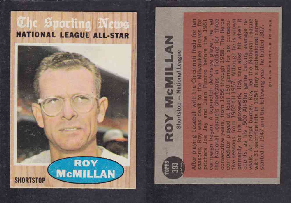 ITEM# : CS56447799 1962 TOPPS BASEBALL CARD #393 R. McMILLAN DESCRIPTION 1962 TOPPS BASEBALL CARD #393 R. McMILLAN CONDITION EX+ NO CREASE PRICE $1.99 USD SHIPPING CANADA RESIDENT 3.00$