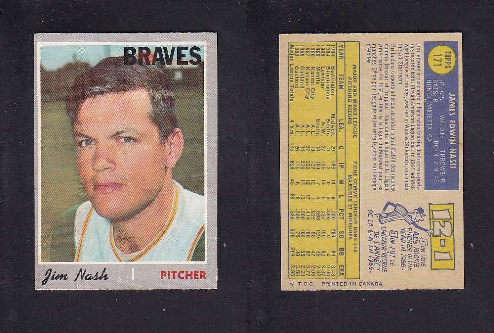 ITEM# : CS56804944 1970 O-PEE-CHEE BASEBALL CARD #171 J. NASH DESCRIPTION 1970 O-PEE-CHEE BASEBALL CARD #171 J. NASH CONDITION EX/MINT NO CREASE PRICE $2.99 USD SHIPPING CANADA RESIDENT 3.00$