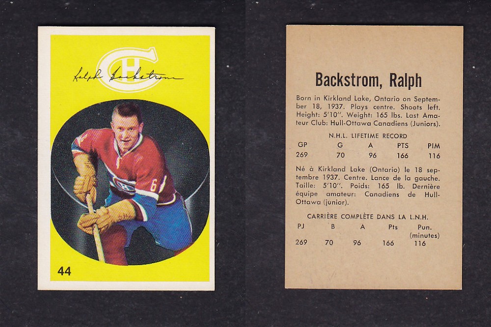 ITEM# : CS58055211 1962-63 PARKHURST HOCKEY CARD #44 R. BACKSTROM DESCRIPTION 1962-63 PARKHURST HOCKEY CARD #44 R. BACKSTROM CONDITION NRMINT NO CREASE PRICE $14.99 USD SHIPPING CANADA RESIDENT 3.00$