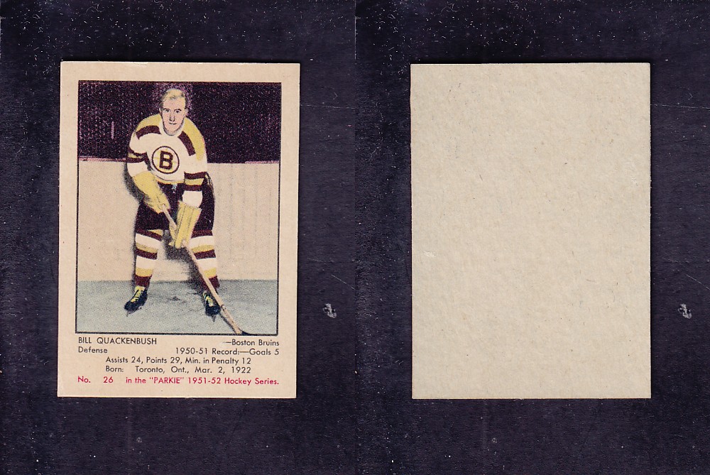 ITEM# : CS58284456 1951-52 PARKHURST HOCKEY CARD #26 B. QUACKENBUSH DESCRIPTION 1951-52 PARKHURST HOCKEY CARD #26 B. QUACKENBUSH CONDITION EX+ NO CREASE PRICE $59.99 USD SHIPPING CANADA RESIDENT 3.00$