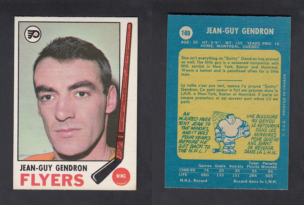 ITEM# : CS58336214 1969-70 O-PEE-CHEE HOCKEY CARD #169 J-G. GENDRON DESCRIPTION 1969-70 O-PEE-CHEE HOCKEY CARD #169 J-G. GENDRON CONDITION EX NO CREASE PRICE $3.99 USD SHIPPING CANADA RESIDENT 3.00$