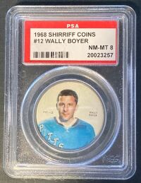 ITEM# : CS59815431 1968-69 SHIRRIFF HOCKEY COIN W. BOYER PIT-12 *SP* DESCRIPTION 1968-69 SHIRRIFF HOCKEY COIN W. BOYER PIT-12 *SP* CONDITION PSA 8 NM-MT PRICE $149.99 USD SHIPPING CANADA RESIDENT 10.00$