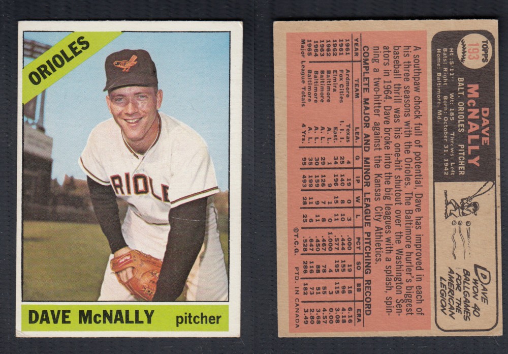1966 O-PEE-CHEE BASEBALL CARD #193 D. MCNALLY