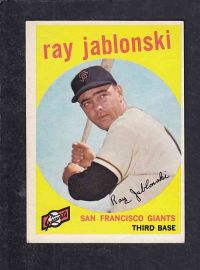 ITEM# : CS61625278 1959 TOPPS BASEBALL CARD #342 R. JABLONSKI DESCRIPTION 1959 TOPPS BASEBALL CARD #342 R. JABLONSKI CONDITION EX+ NO CREASE PRICE $2.99 USD SHIPPING CANADA RESIDENT $3