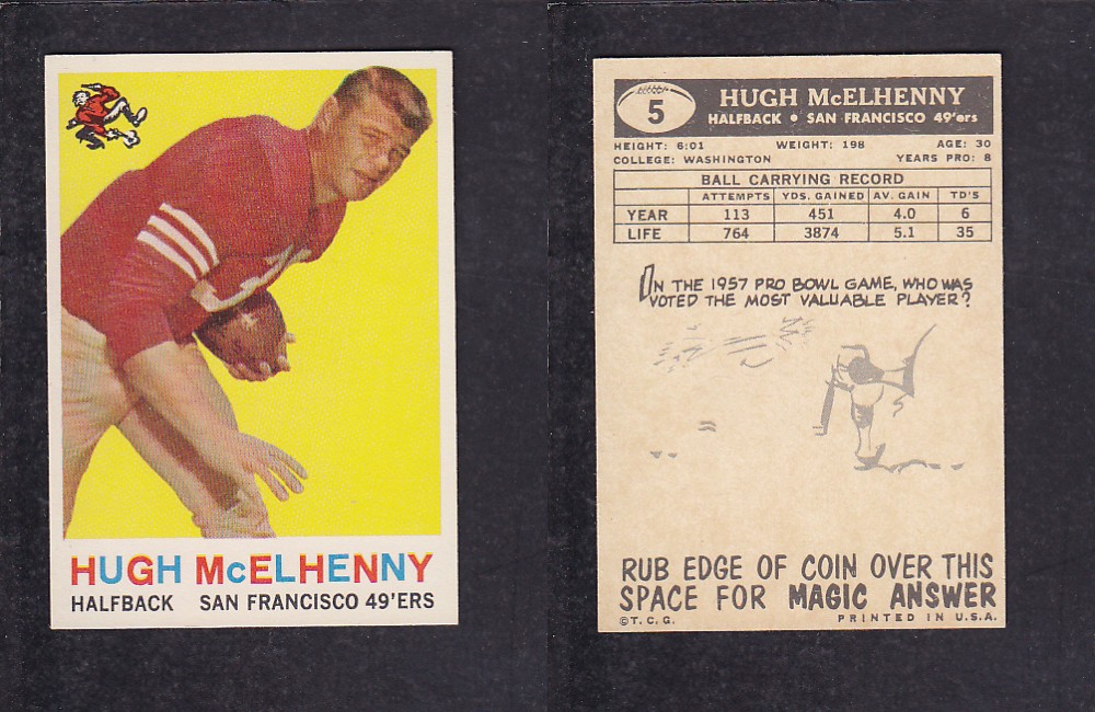 1959 NFL TOPPS FOOTBALL CARD #5 H. MCELHENNY
