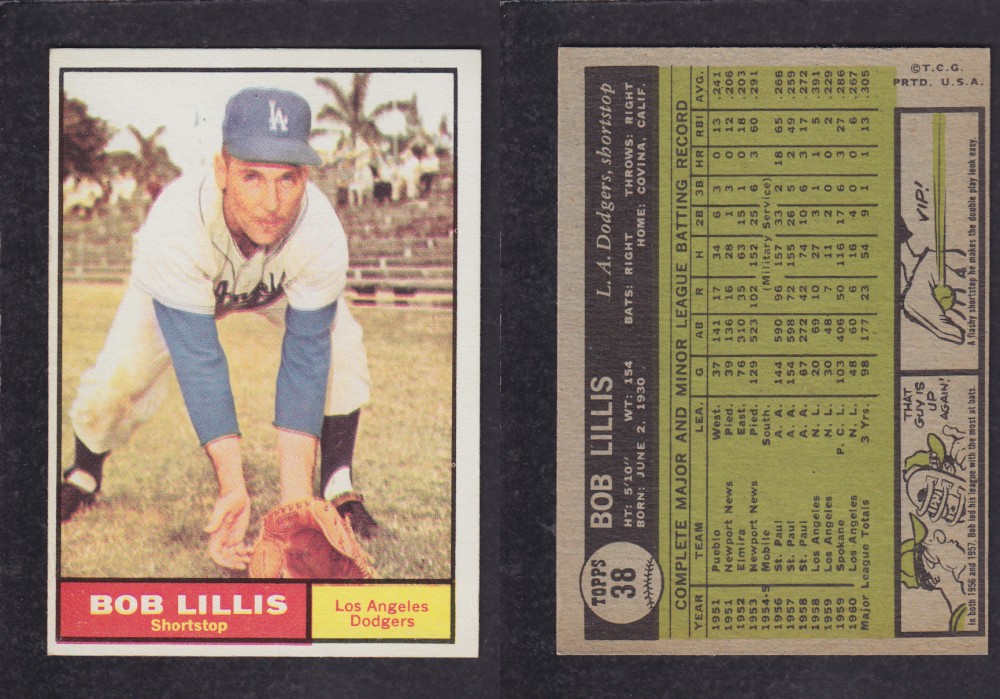 ITEM# : CS62820624 1962 TOPPS BASEBALL CARD #38 B. LILLIS DESCRIPTION 1962 TOPPS BASEBALL CARD #38 B. LILLIS CONDITION NRMINT NO CREASE PRICE $2.99 USD SHIPPING CANADA RESIDENT 3.00$