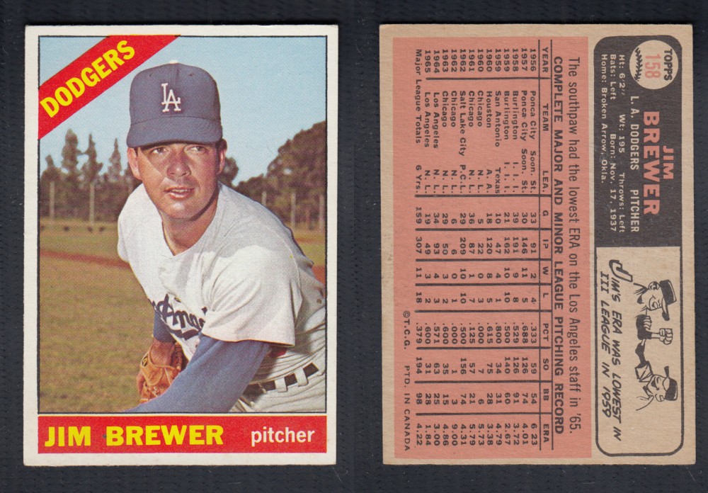 ITEM# : CS66411137 1966 O-PEE-CHEE BASEBALL CARD #158 J. BREWER DESCRIPTION 1966 O-PEE-CHEE BASEBALL CARD #158 J. BREWER CONDITION EX+