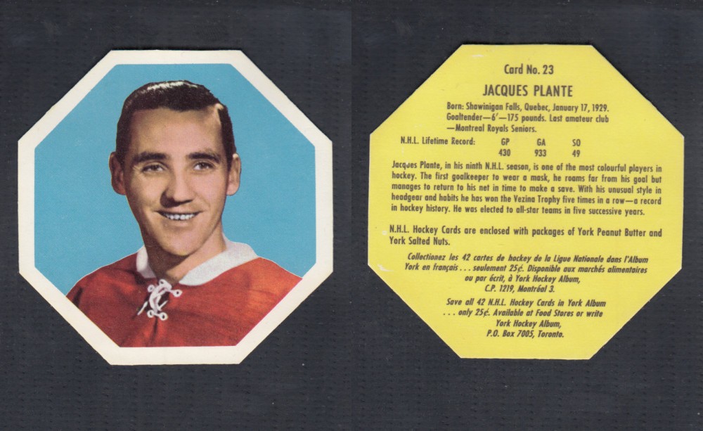 ITEM# : CS66426719 1961-62 YORK HOCKEY CARD #23 J. PLANTE DESCRIPTION 1961-62 YORK HOCKEY CARD #23 J. PLANTE CONDITION MINT