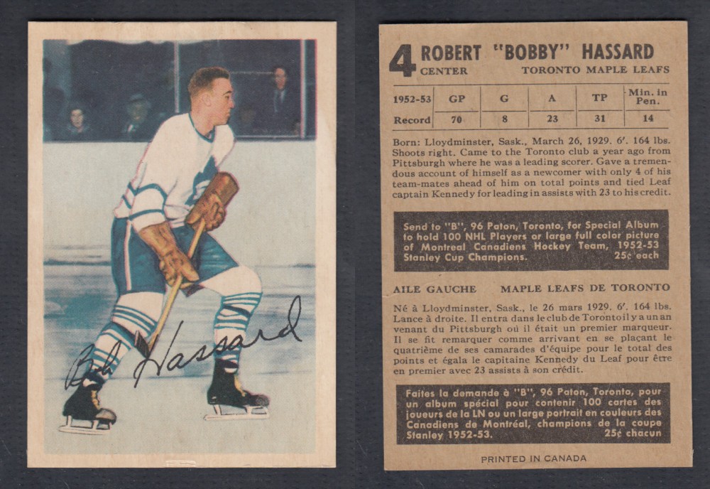 ITEM# : CS66556260 1953-54 PARKHURST HOCKEY CARD #4 R. HASSARD DESCRIPTION 1953-54 PARKHURST HOCKEY CARD #4 R. HASSARD CONDITION EX+ - NO CREASES PRICE $19.99 USD SHIPPING CANADA RESIDENT 3.00$
