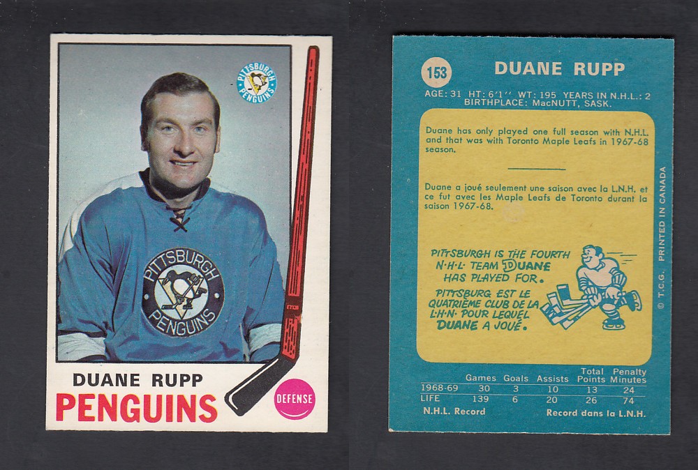ITEM# : CS67019977 1969-70 O-PEE-CHEE HOCKEY CARD #153 D. RUPP DESCRIPTION 1969-70 O-PEE-CHEE HOCKEY CARD #153 D. RUPP CONDITION NRMINT NO CREASE PRICE $9.99 USD SHIPPING CANADA RESIDENT 3.00$