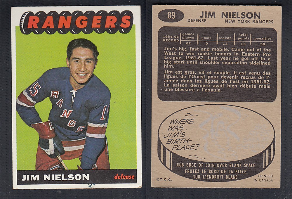 ITEM# : CS67055154 1965-66 TOPPS HOCKEY CARD #89 J. NIELSON DESCRIPTION 1965-66 TOPPS HOCKEY CARD #89 J. NIELSON CONDITION VG 1 CORNER CREASE PRICE $4.99 USD SHIPPING CANADA RESIDENT 3.00$