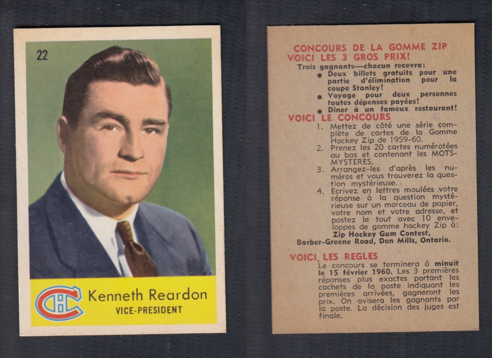 ITEM# : CS67260801 1959-60 PARKHURST HOCKEY CARD #22 K. REARDON DESCRIPTION 1959-60 PARKHURST HOCKEY CARD #22 K. REARDON CONDITION EX/MINT