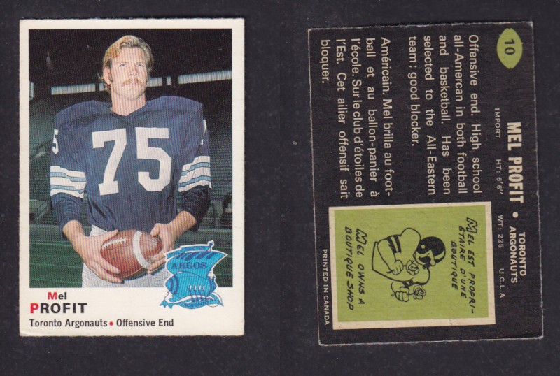 ITEM# : CS67900150 1970 CFL O-PEE-CHEE FOOTBALL CARD #10 M. PROFIT DESCRIPTION 1970 CFL O-PEE-CHEE FOOTBALL CARD #10 M. PROFIT CONDITION EX NO CREASE PRICE $4.99 USD SHIPPING CANADA RESIDENT $3.00
