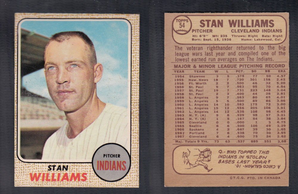 1968 O-PEE-CHEE BASEBALL CARD #54 S. WILLIAMS
