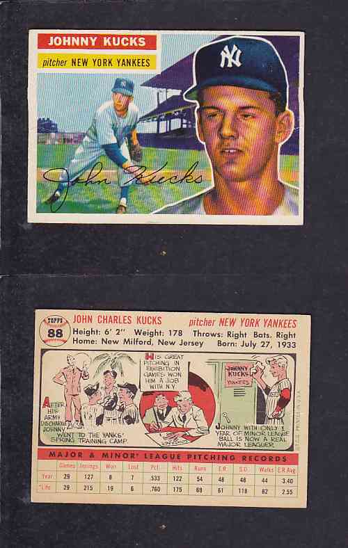 ITEM# : CS69282909 1956 TOPPS BASEBALL CARD #88 J. KUCKS DESCRIPTION 1956 TOPPS BASEBALL CARD #88 J. KUCKS CONDITION VG 1 CREASE PRICE $2.99 USD SHIPPING CANADA RESIDENT $3.00