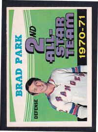 ITEM# : CS69705665 1971-72 O-PEE-CHEE HOCKEY CARD #257 SECOND TEAM ALL STAR: B. PARK DESCRIPTION 1971-72 O-PEE-CHEE HOCKEY CARD #257 SECOND TEAM ALL STAR: B. PARK CONDITION EX/MINT NO CREASE PRICE $5.99 USD SHIPPING CANADA RESIDENT 3.00$