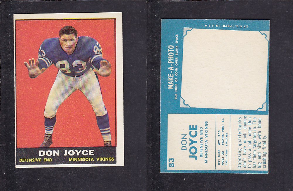 1961 NFL TOPPS FOOTBALL CARD #83 D. JOYCE photo