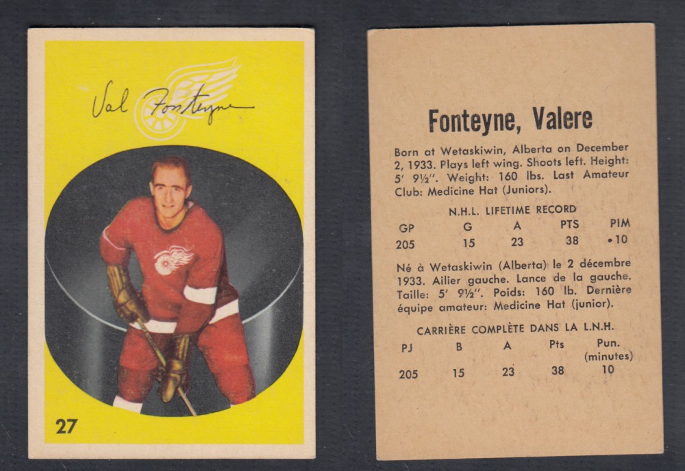 ITEM# : CS76041622 1962-63 PARKHURST HOCKEY CARD #27 V. FONTEYNE DESCRIPTION 1962-63 PARKHURST HOCKEY CARD #27 V. FONTEYNE CONDITION EX - NO CREASES PRICE $9.99 USD SHIPPING CANADA RESIDENT 3.00$