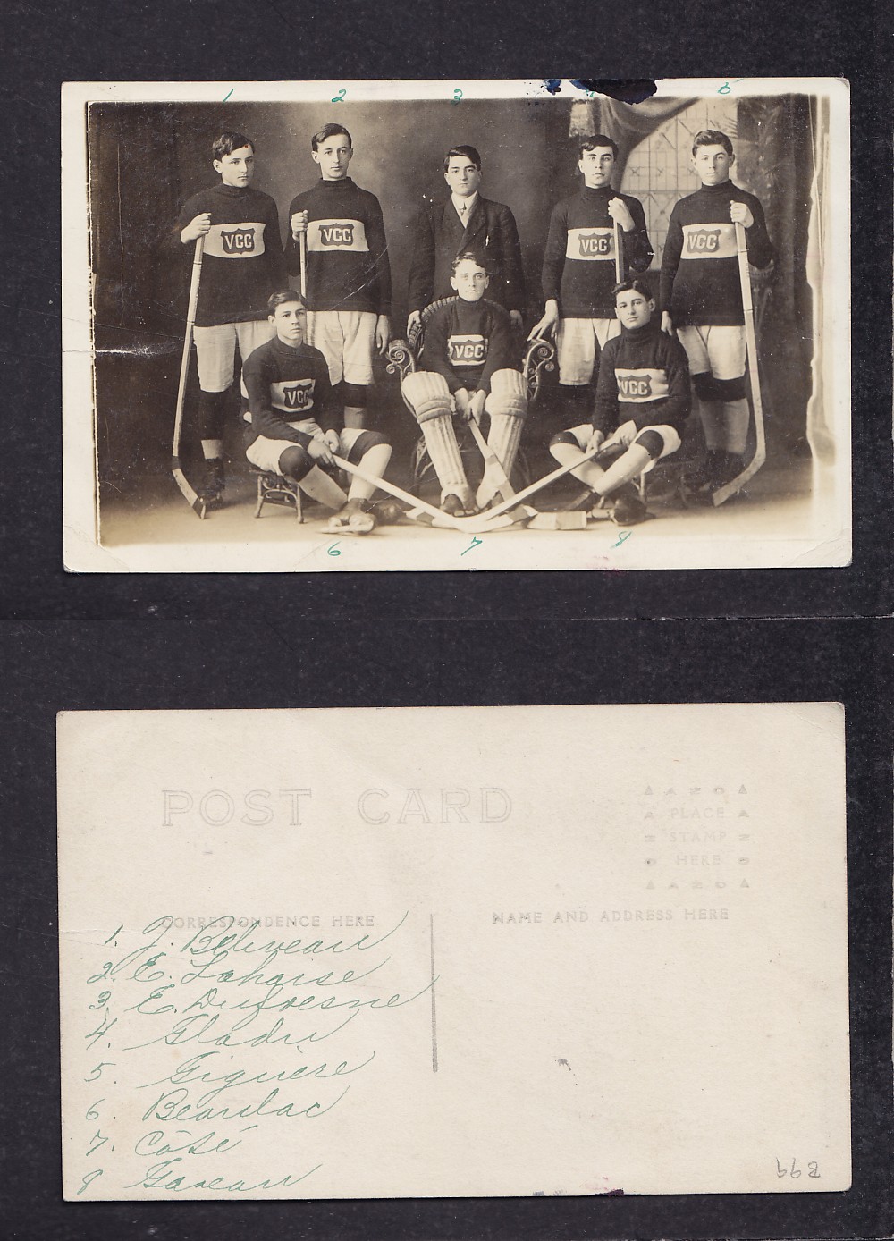 1900'S VICTORIAVILLE HOCKEY TEAM POST CARD