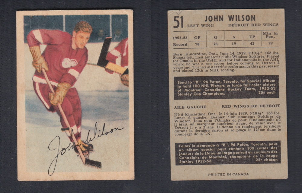 1953-54 PARKHURST HOCKEY CARD #51 J. WILSON