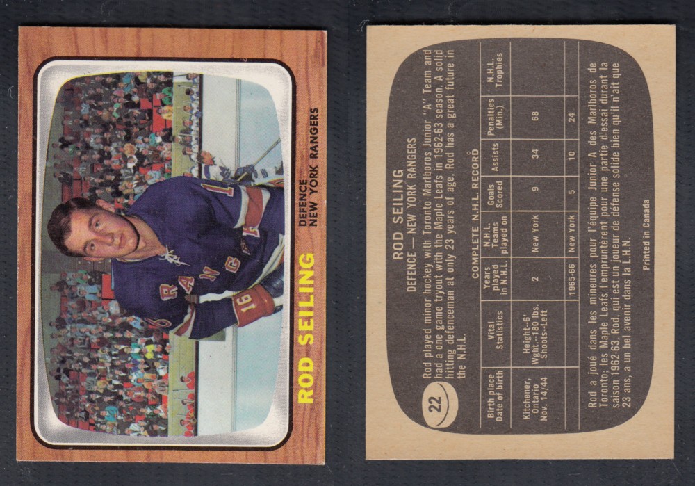 ITEM# : CS80573119 1966-67 TOPPS HOCKEY CARD #22 R. SEILING DESCRIPTION 1966-67 TOPPS HOCKEY CARD #22 R. SEILING CONDITION EX/MINT